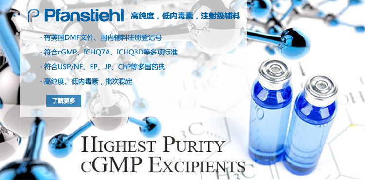 “熱烈祝賀Pfanstiehl的注射級甘氨酸Glycine(G-140)喜獲CDE登記號F20250000403, 這是Pfanstiehl產品獲得的第18個CDE登記號!”甘氨酸在醫藥輔料制劑中應用廣泛,, 可作為緩沖劑,增溶劑,穩定劑等,具有諸多優勢。Pfanstiehl秉承一貫高品質理念,為滿足全球生物制藥行業對于高品質甘氨酸的需求,隆重推出的注射級甘氨酸Glycine (G-140), 具有超高純度,超低內毒素,超低金屬殘留的特點,單獨檢測29種金屬離子,并且新增DNA,RNA,DNA酶,RNA酶和脂肪酶,亞硝酸鹽等多項質量指標的檢測,符合多國藥典規定(USP, EP, BP, JPE, ChP),可用于生物治療性藥物和疫苗的生產。產品信息:· 產品名稱:Glycine, High Purity, Low Endotoxin, Low Metals, USP, EP, BP, JPE, ChP (G-140)· 中文名稱:甘氨酸· 分子式:C2H5NO2· 分子量:75.07 g / mol· CAS號:56-40-6· 產品貨號:G-140產品特點: · 超高純度,超低內毒素,超低微生物含量,超低金屬雜質殘留· 質量指標新增DNA,RNA,DNA酶,RNA酶,脂肪酶和亞硝酸鹽檢測· 符合多國藥典:USP, EP, BP, JPE, ChP· 符合ICH Q3D標準· 符合GMP標準· 已獲DMF和CDE登記號 產品應用:· 緩沖劑· 穩定劑· 增溶劑如果您對Pfanstiehl注射級別Glycine G-140感興趣,歡迎聯系Pfanstiehl 中國區代理商北京西美杰科技有限公司獲得如下詳細的產品概況說明文件和測試樣品。Pfanstiehl Inc.最新產品系列如下,歡迎聯系北京西美杰科技有限公司獲取100g裝免費樣品。北京西美杰科技有限公司為Pfanstiehl中國代理,為客戶提供完善的技術支持與售后服務。歡迎撥打西美杰客服電話400-050-4006或者登陸網站www_xmjsci_com.home566.com了解更多信息。 更多>